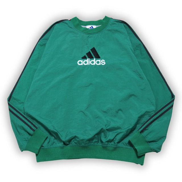 ■商品説明 90年代製 アディダス ナイロンプルオーバー 90s adidasのナイロンプルオーバーです! 光沢感のあるナイロンボディに、立体感ある刺繍ロゴが映えるプルオーバー、 裏地付きで着心地も良く、裾のサイドスリットはジッパーで開閉できてシルエット調整可能です◎ スポーティーなグリーンのカラーリングでゆったりとしたシルエット、 レイヤードにぴったりでストリートにもスポーツMIXにもハマる1着です。 OLD ADIDAS オールドアディダス ■サイズ L 着丈 68 袖丈 62 肩幅 64 身幅 68 ■製造国 マレーシア ■カラー 緑色/グリーン/green ■ブランド アディダス adidas ■素材 ナイロン ■状態 ジップの持ち手のグリップ部分が一部破損しております。 使用上には問題ございません。 目立つ傷や汚れ等はございません。 写真にてご確認をお願い致します。 古着の特性等ご理解のうえ、ご購入をお願いいたします。 _______________________ ◻︎ご注文後のキャンセルはできかねます。しっかりと内容を確認の上、ご注文をお願いいたします。 ◻︎明らかな欠陥等がある場合をのぞき、基本的には返品はお受けできません。 ◻︎ ご使用のデバイスやモニター環境により、実物と多少の色味の違いが生じる場合がございます。あらかじめご了承ください。