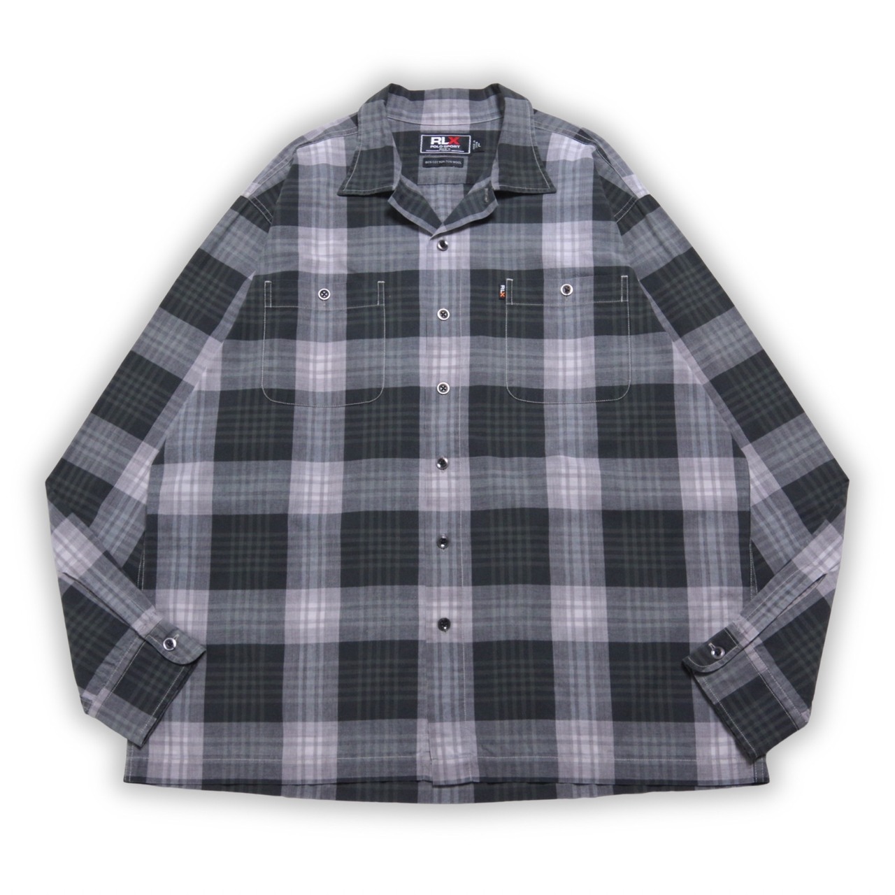 90s "RLX POLO SPORT" plaid L/S open collar shirt